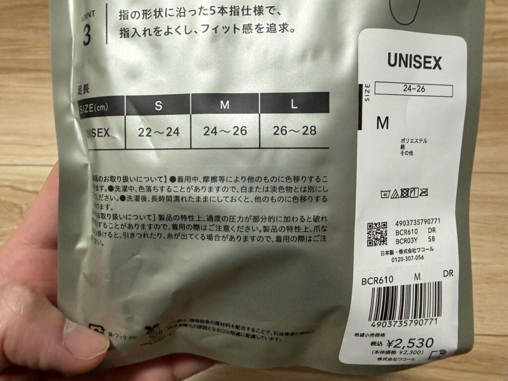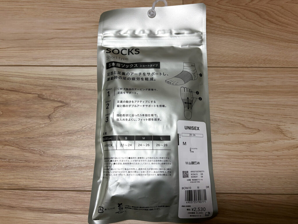 そこで今回紹介するのが、CW-Xの「5本指ソックス(以下、BCR610)」です。