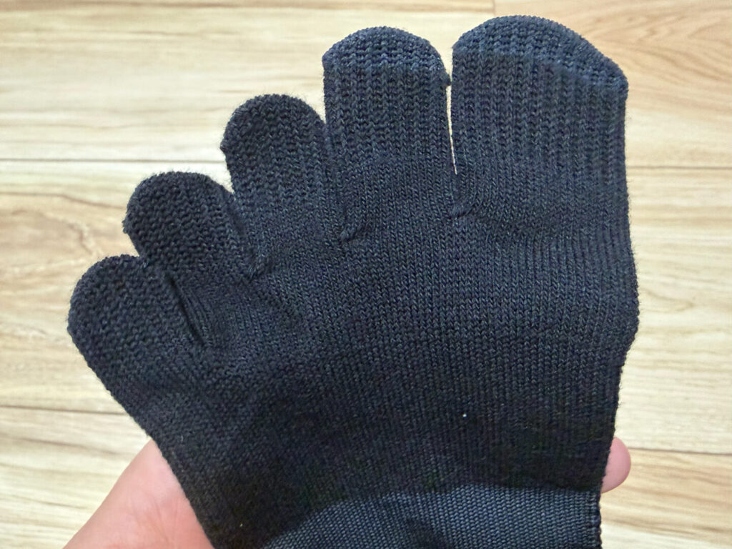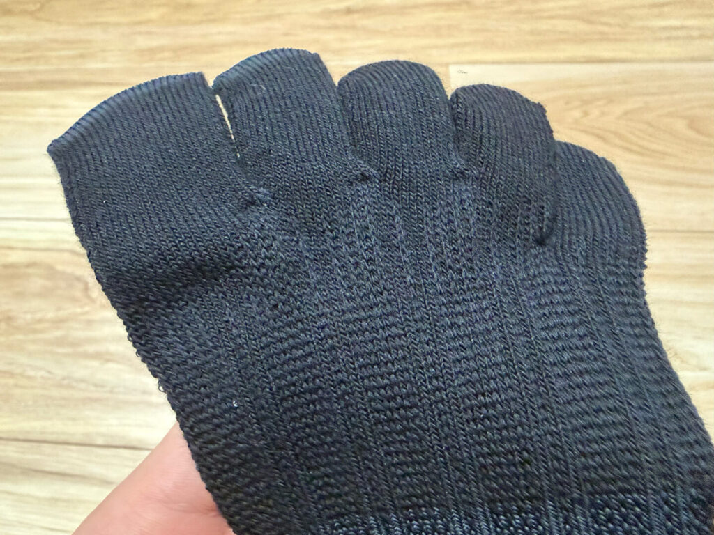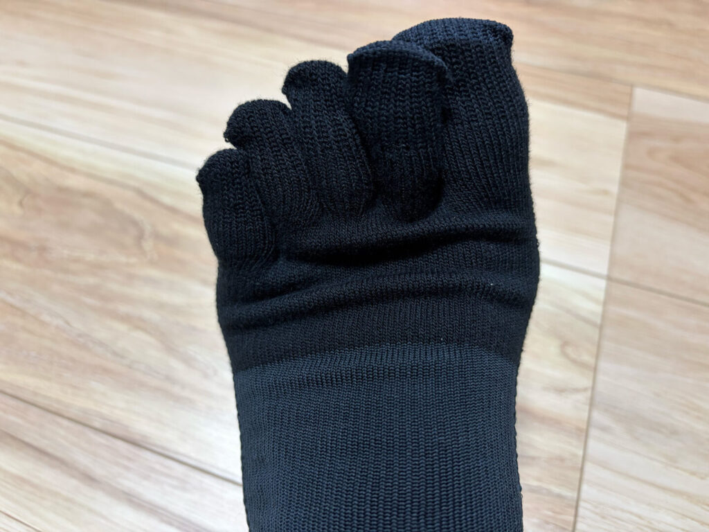 感覚としては、タビオの「レーシングラン 五本指」とほぼ同じくらいの厚さです。