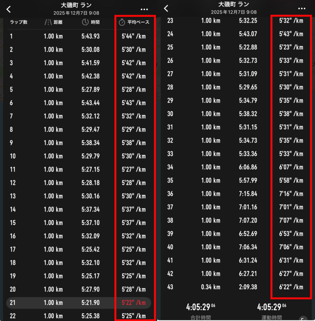 ペースは5:50/km、コースはほぼフラットで、42kmを完走しています。