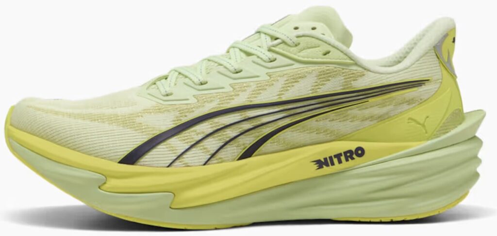 PUMAの人気ランニングモデル「ディヴィエイト ニトロ」シリーズ最新作。反発性・クッション性・安定感のバランスを高めた次世代厚底シューズとして、練習からレースまで幅広いシーンで活躍します。