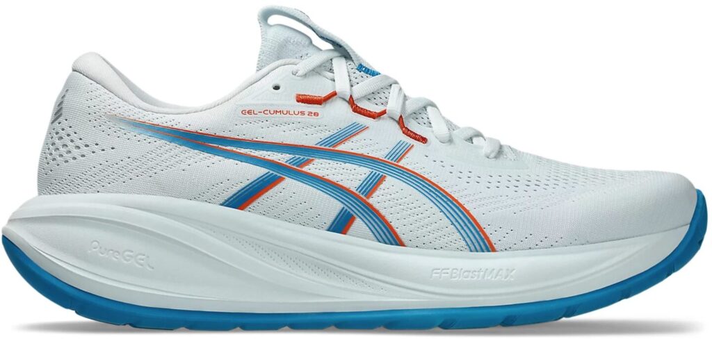 ミッドソールには、軽量で弾むようなクッション性の高い FF BLAST PLUS フォーム と、かかと部分の PureGEL テクノロジー を組み合わせることで、着地衝撃をやさしく吸収。路面からの反発力も感じられるため、走行感の快適さと推進力の両立が図られています。