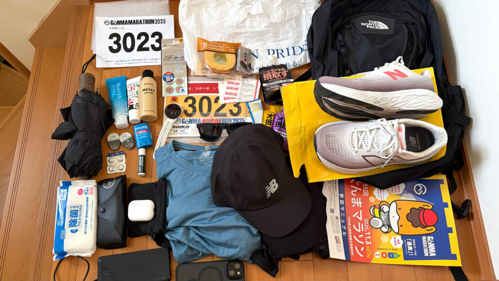 このあたりが「最低限これがないと困る」マラソンの持ち物です。