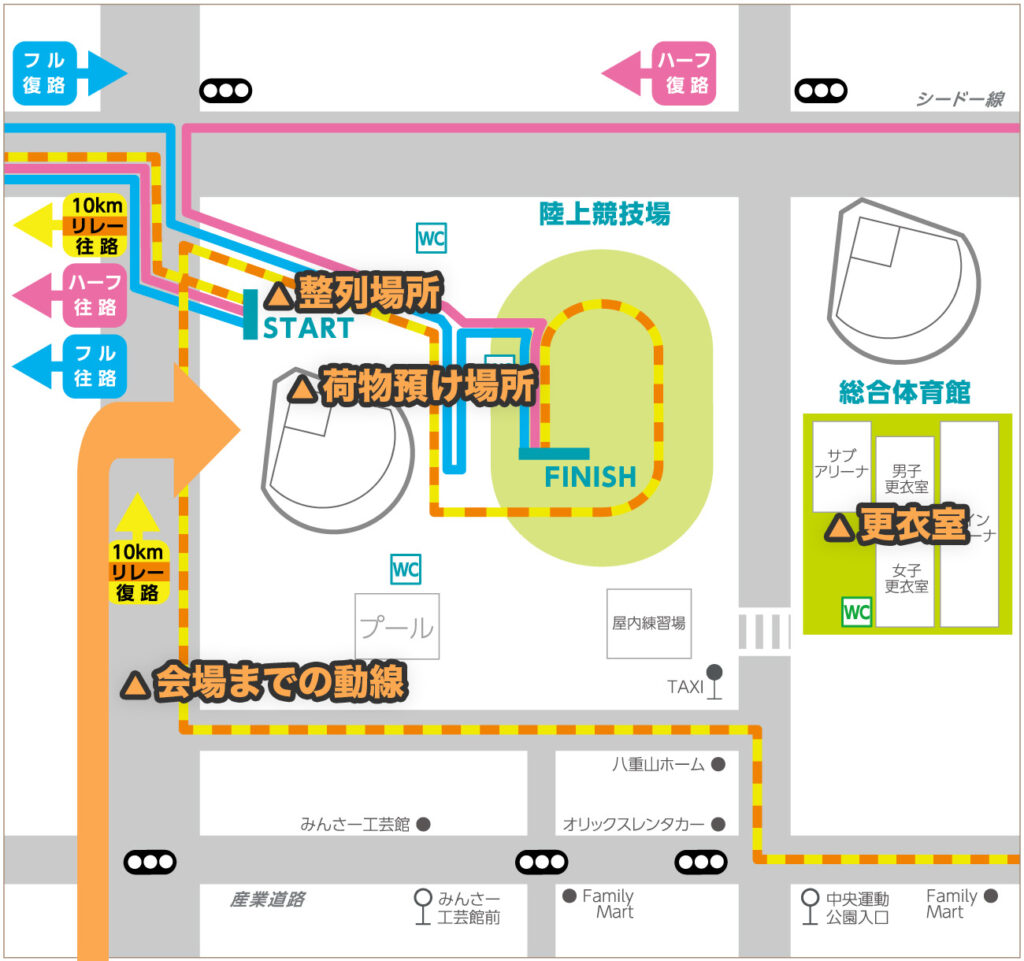 大会要項で更衣室の有無・場所・開閉時間・手荷物動線を事前確認し、「駅(または駐車場)→更衣→手荷物預け→トイレ→整列」の最短ルートを設計しておけば、当日の無駄とストレスを最小化できます。