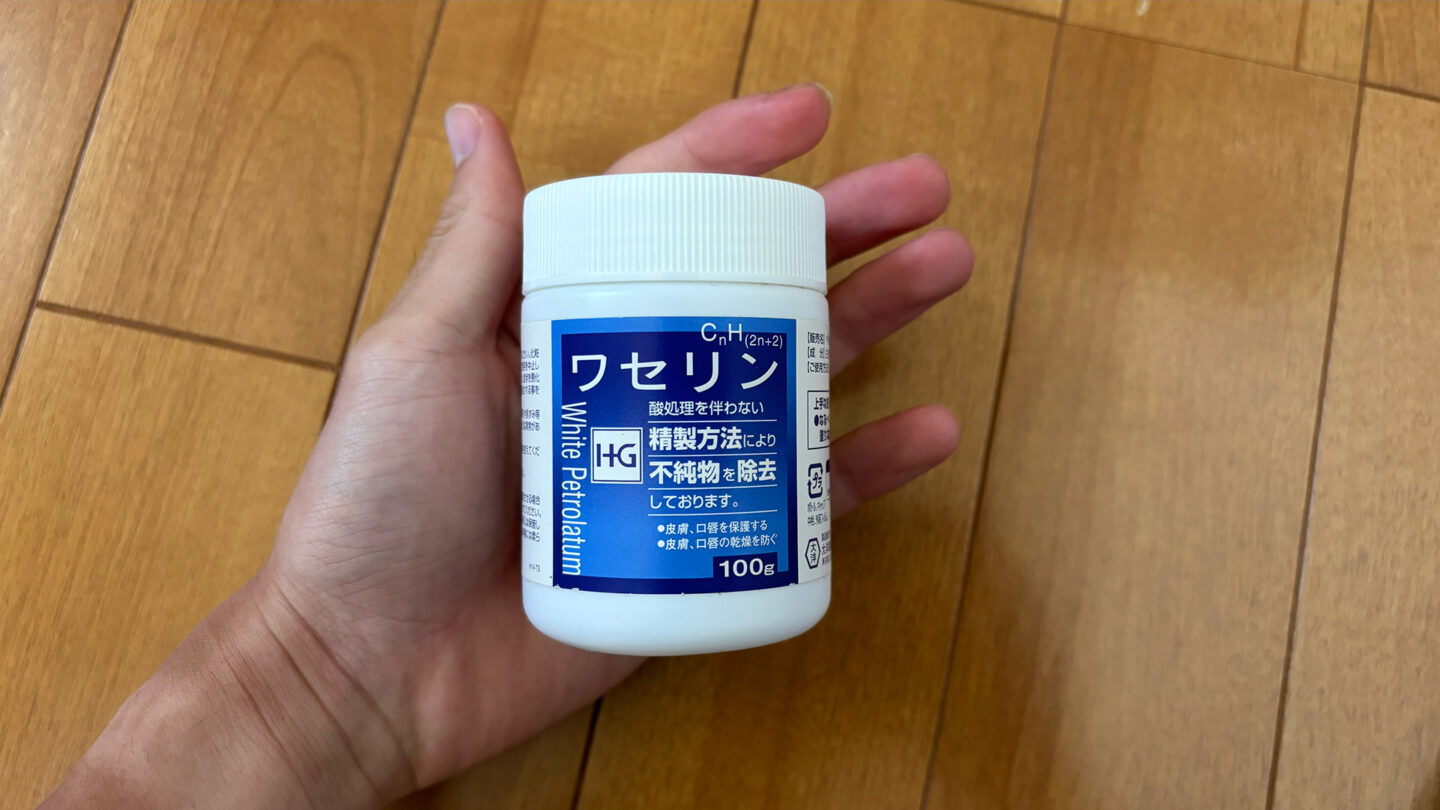 → ワセリンを薄く広く塗って、肌に油膜を作る。摩擦を大きく減らせます。