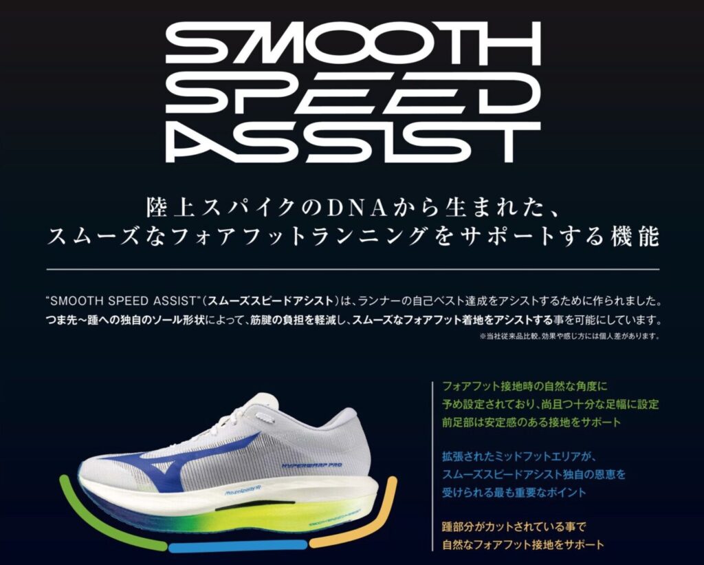 SMOOTH SPEED ASSIST(スムーズスピードアシスト)は、ミズノ独自のソール設計テクノロジーです。