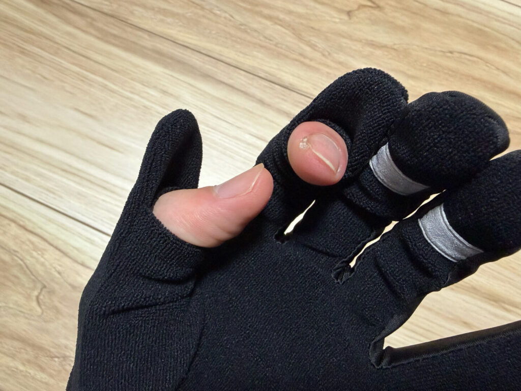 親指・人差し指を出せるので、操作も素手に近い感覚で行えます。