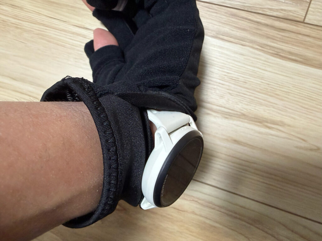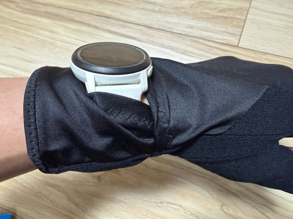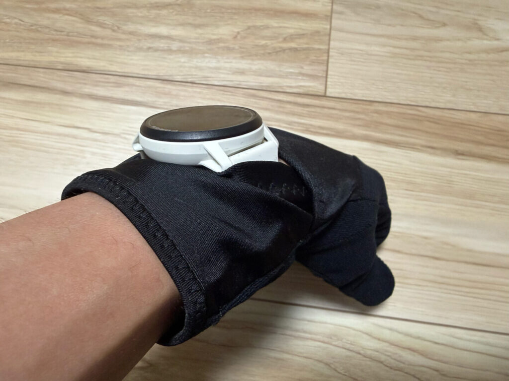 画面はしっかり見える一方で、手首まわりの肌の露出は最小限に抑えられるため、寒さ対策もしっかりできます。
