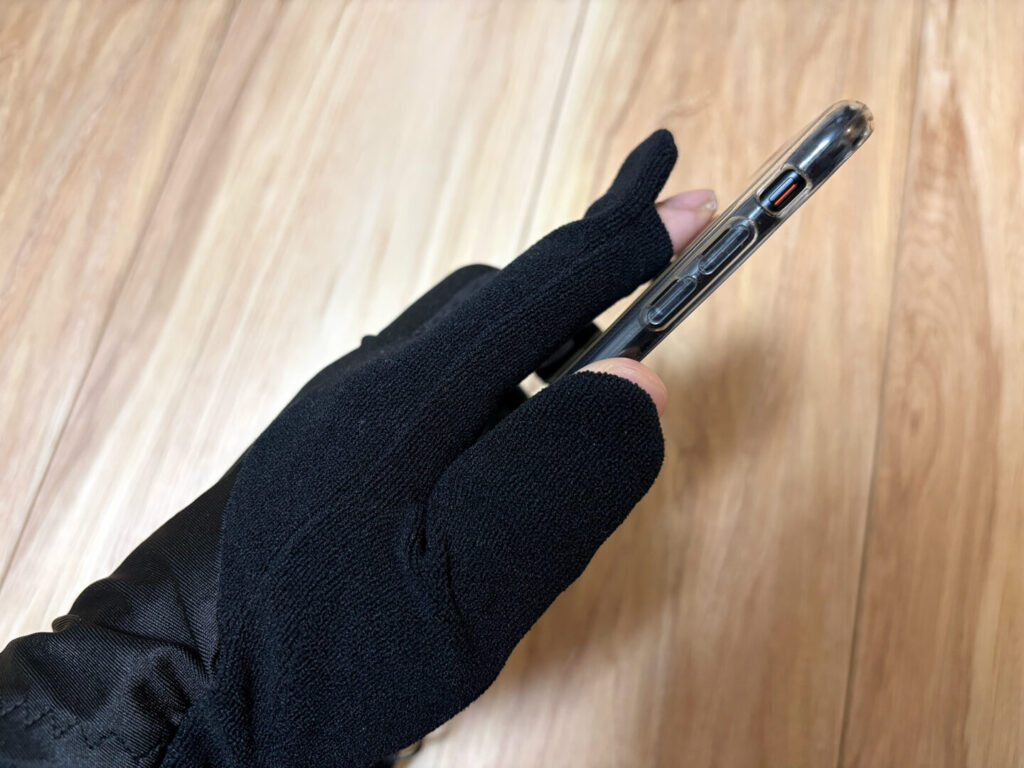 生地はやや厚手ですが、手袋を着けたままでもスマホを持って走っていて気になりませんでした。